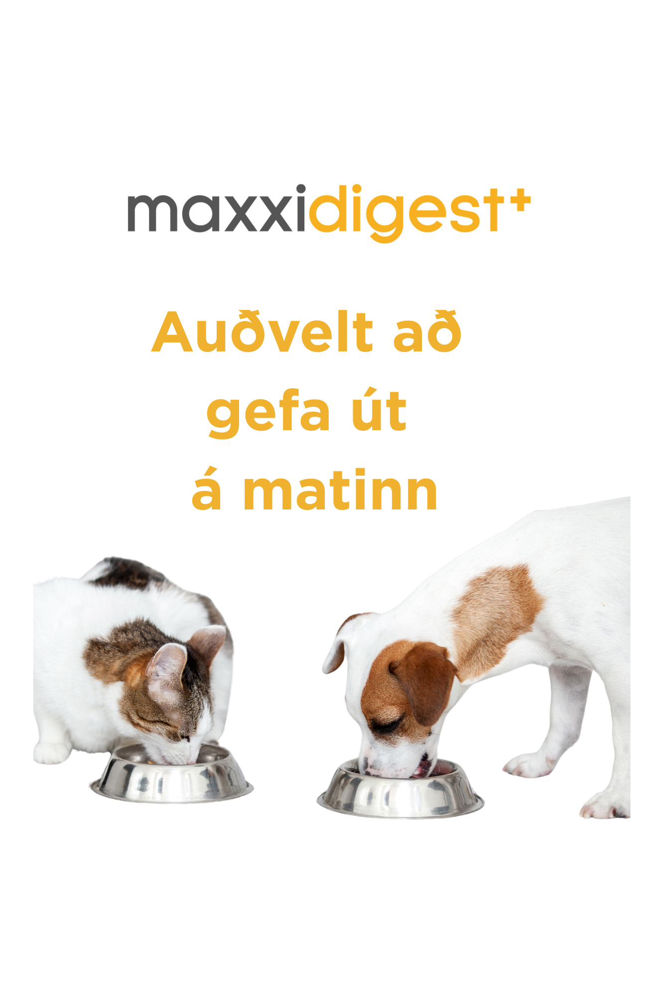 Sýklalyf eru þekkt fyrir að raska starfsemi góðgerla hjá bæði gæludýrum og fólki, sem getur leitt til meltingaróþæginda, sýkinga í meltingarvegi eins og þvagfærasýkinga, og jafnvel sveppasýkinga. Samsetning maxxidigest+ af pre- og próbíótíkum hjálpar til við að enduruppbyggja heilbrigt gerlaflórulíf og koma hundinum þínum aftur í gott jafnvægi.